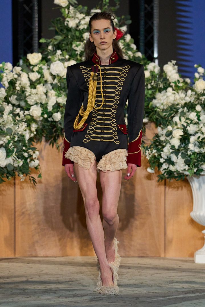 2026春夏シーズンから、じわじわと人気急上昇中のナポレオン&ミリタリージャケット。SNSでは早くも話題になっている新潮流キーワードが、本格的にトレンド入り。コスチューム感覚で着こなしたい「ケブリア」のボディスーツは、裾からチラリとのぞくレースのフリルがポイントに。ミニマル派には「ケイト」や「ミスリデイト」をおすすめ。