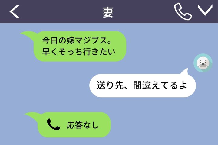 あの日、残業だと嘘をついて相手の女性と会う予定でした。妻に「遅くなる」と連絡した後、相手に送るつもりだったメッセージを打ちました。「今日の嫁マジブス。早くそっち行きたい」。送信ボタンを押した直後、トーク画面の名前を見てやってしまったと思いました。