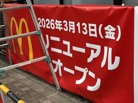 マクドナルド武蔵境北口店は2月中旬から一時休業し、現在は改装工事の真っ最中。リニューアルオープンは3月13日(金)朝6:00予定です。