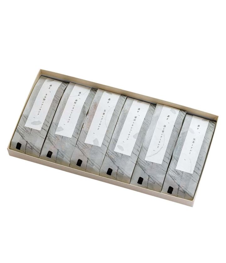 「この冬一番活躍しているレザーパンツ。気心の知れた取引先といえども、少しキレイめを意識してネイビーのニットを合わせます。訪問には、かはんのお菓子を。個包装かつ、オシャレなフロランタンを詰め合わせで。中之島にある「かはん」はモダンな店構えも◎」