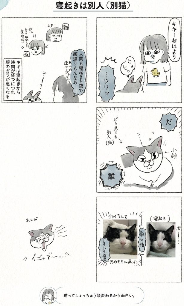 どう見ても別人!? 寝起きの猫に声をかけると、いつもと違う顔をしていて…/うちの猫は今日も塩対応