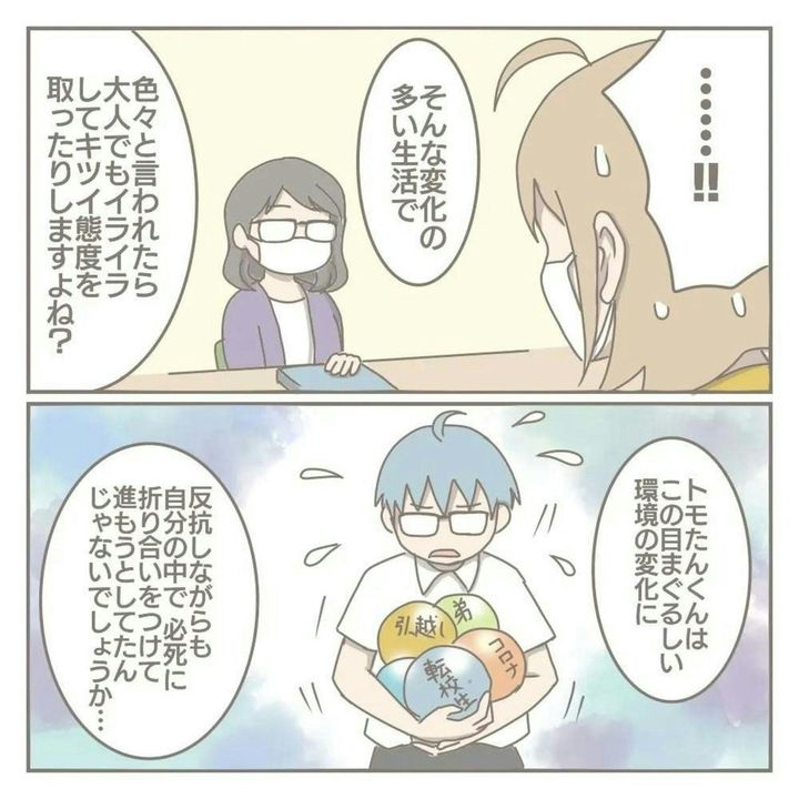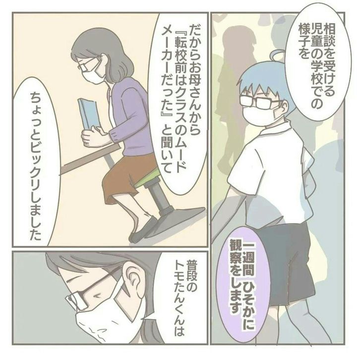 転校前は、クラスのムードメーカーのような存在で、友だちと一緒に元気いっぱい遊んでいたトモたん。そのことを考えると、今の学校生活は息苦しいことでしょう…。