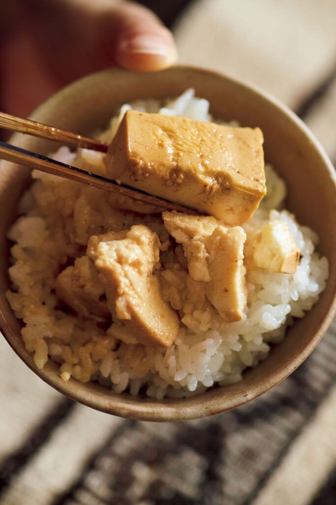 熱々のごはんに、煮汁がしみたふるふるの豆腐がたまらん! このコンビネーションに思わず頬がゆるみます。