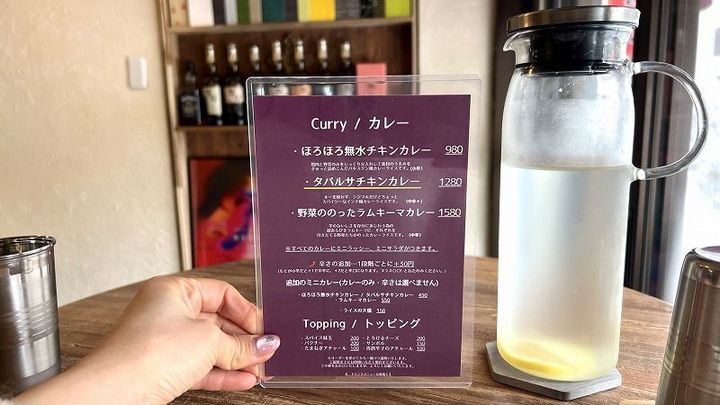 3種類あるカレーのなかから、今回は店名がメニュー名に入っている「タバルサチキンカレー」(1280円)をチョイスしました。