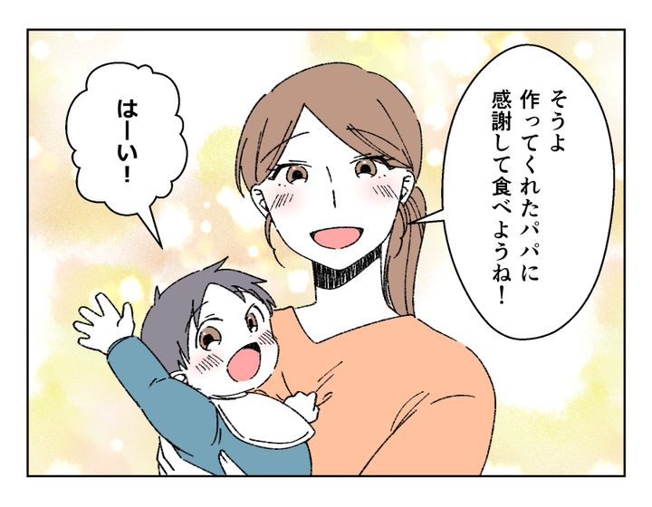 レナさんは30代の専業主婦。5歳と1歳の子育てに追われる毎日ですが、どんなに忙しくても食事作りは頑張ろうと思っているそう。しかしある日、夫のユウスケさんが、レナさんの作った食事を「バカでも作れそう」と全否定。怒ったレナさん、1回目の復讐が失敗して義実家で次の作戦に。ほうれん草のごまあえを見た娘が「バカでも作れるご飯〜」と。どうやらレナさんが今日のために仕込んでいたようなのです。 原因が息子であるユウスケさんにあると気づいたお義母さんは、レナさんの頑張りやいかにひどいことを言ったのか教え、ユウスケさんはようやく心からの「ごめんなさい」を言いました。