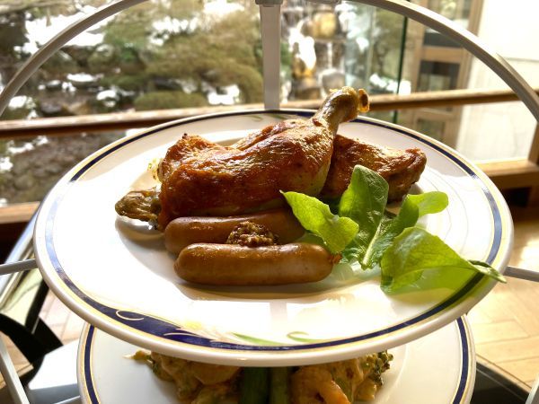 4段目はソーセージとタンドリーチキン。タンドリーチキンは甘めのカレー風味。
