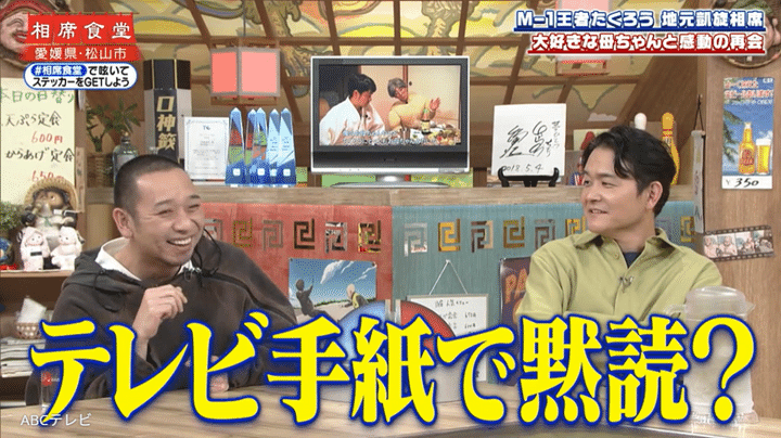 バラエティ番組『相席食堂』(ABCテレビ)に、漫才頂上決戦『M-1グランプリ2025』王者・たくろうが登場! ツッコミ担当・きむらバンドが、女手一つで育ててくれた64歳の母親と久しぶりに再会するも、イマイチ泣けない予想外の行動に出て……!?