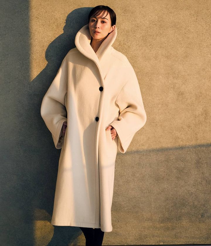 袖を通せば瞬時に多幸感が満ちていく、全方位計算しつくされたザ・ロウの〝一生モノ〟コート。優美な曲線とシャープな直線、余白と洗練感が共存するモードなフォルムが、多くを語らずとも圧倒的存在感を発揮。こだわりと美意識の詰まった憧れの1着に自分を引き上げてもらいながら、コートに似合う存在になるための努力も惜しみません。¥922,900(ザ・ロウ/ザ・ロウ・ジャパン)