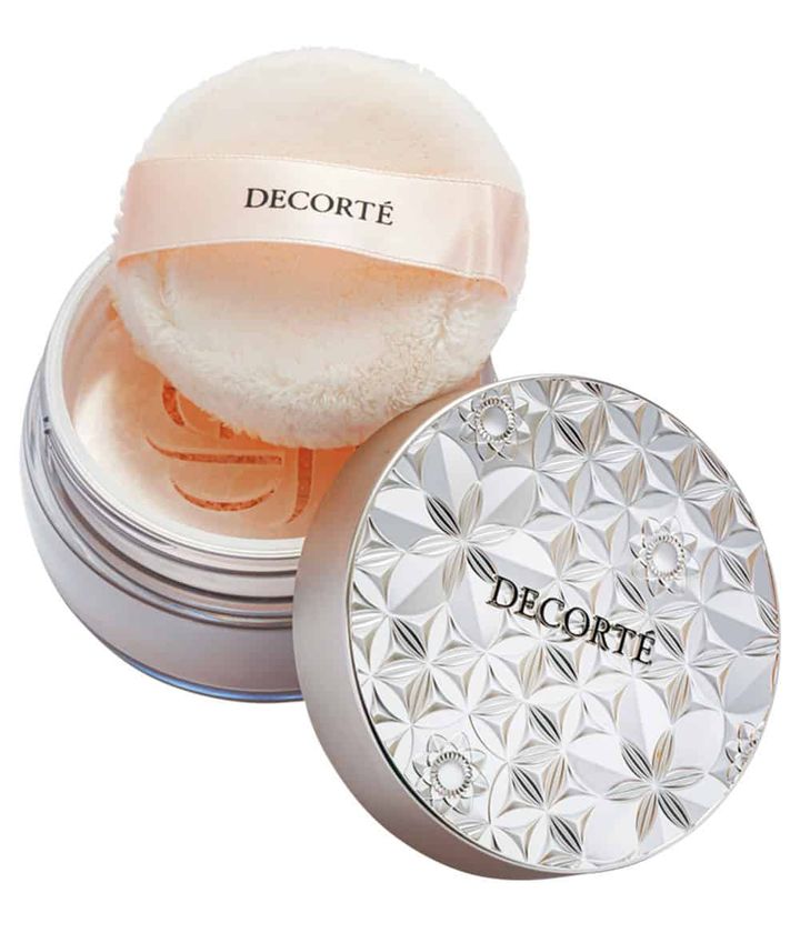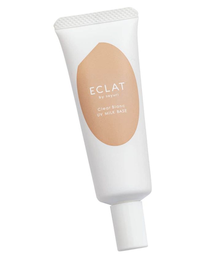 下地にECLAT by sayuri のUVミルクベース、デコルテのルースパウダーをふわっと重ねて、GIVENCHY のミストでツヤ肌完成。