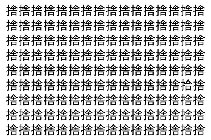 【脳トレ】「捨」の中に紛れて1つ違う文字がある!?あなたは何秒で探し出せるかな??【違う文字を探せ!】
