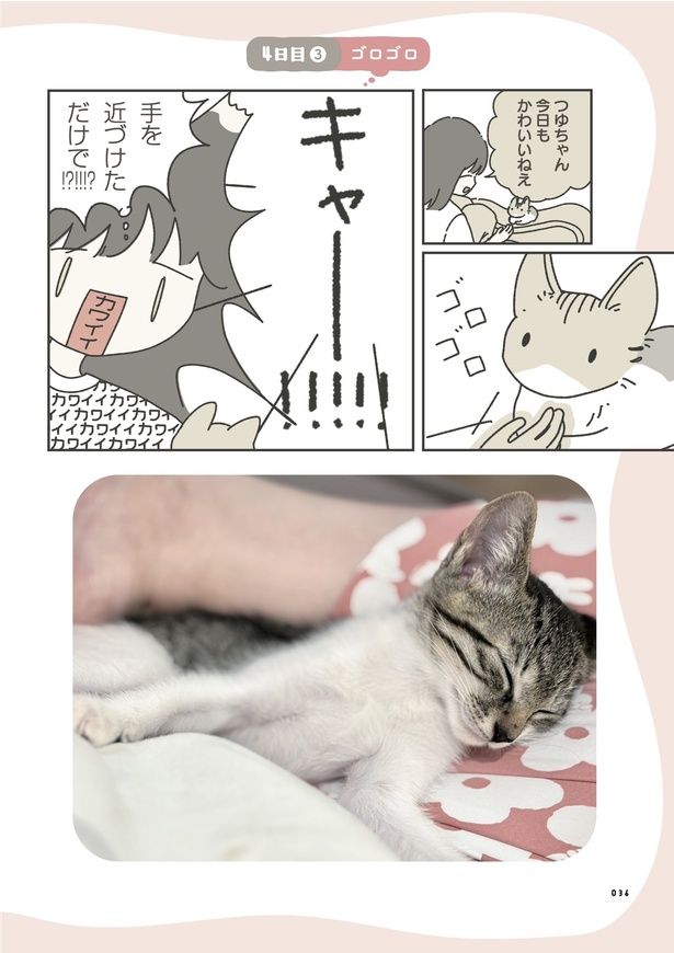 お迎え初日とは思えないほど甘えてくる人懐っこい子猫のつゆちゃんに、飼い主の脳内は「かわいい」でいっぱいに。仕事も手につかず、思考停止してしまうほど溺愛し、いつの間にか完全につゆちゃん中心の生活になっていきーー。