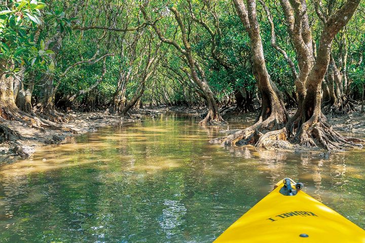 もう一つの象徴が、日本では2番目に大きいマングローブの森。沖縄に比べて背が低く、カヌーでトンネルのような水路をくぐり抜ける体験は、この島ならではの魅力です。