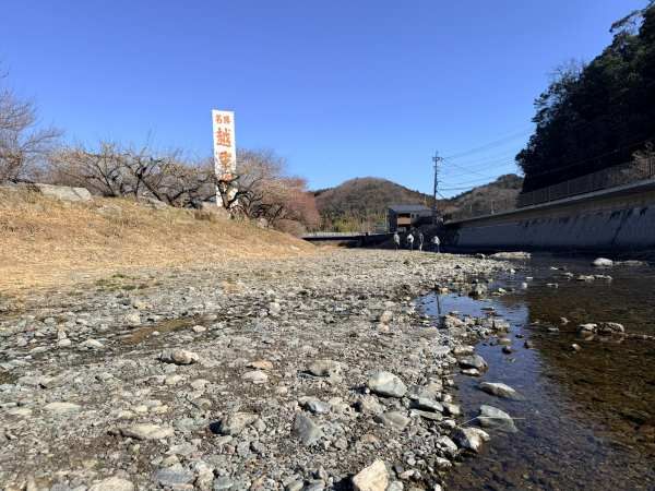 梅林の隣には河原へ降りられる場所もあり、自然をより近くに感じられるのも魅力。ゆったり散策するだけでも心がほぐれます。