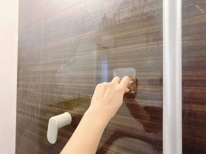保護フィルムを剥がしたら、ガラスやタイル、鏡のようなツルツルした場所にくっつけて使うことができるのです。