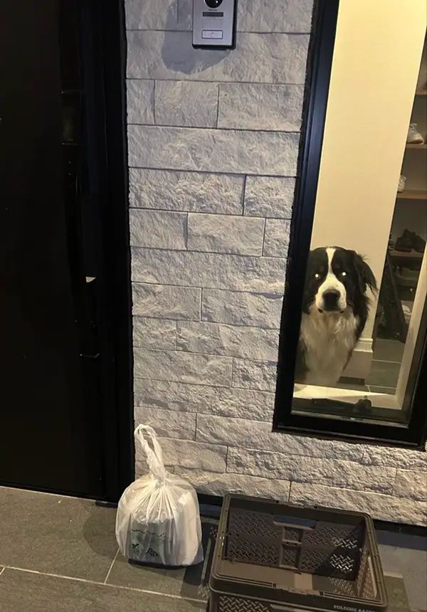 ・監視の圧が強すぎて、配達員も思わず二度見したのかな。