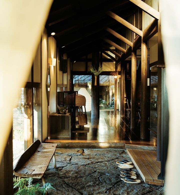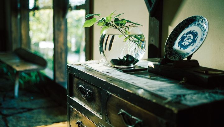 母屋に合わせて増築された館内には、建物と同様に囲炉裏やガラス戸など、時を経た家具や調度品が静かに佇んでいる。