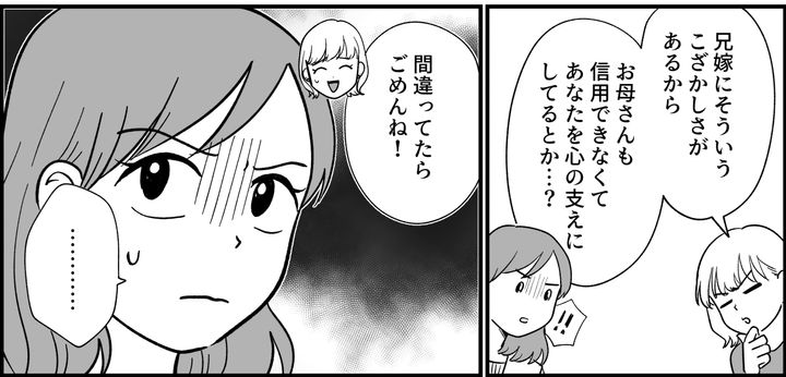 兄や兄嫁のリコさんにたしなめられ、自分や旦那の考え方がおかしいのではと自信をなくしていました。