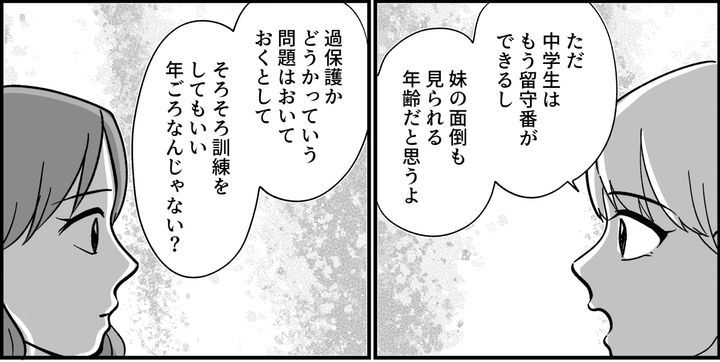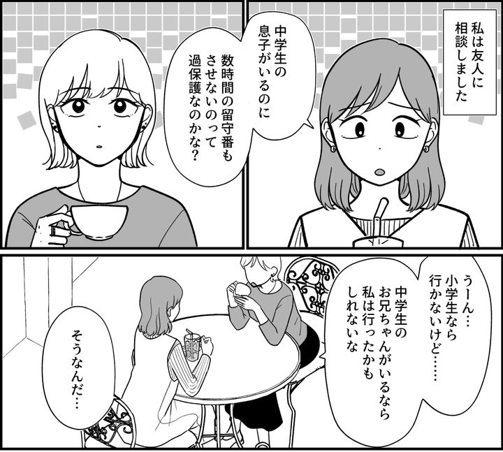 友人の意見は、突然したこともない留守番をさせるのは難しいけれど、もう中学生なのだから、これから訓練させた方がよいのではとアドバイスをくれました。