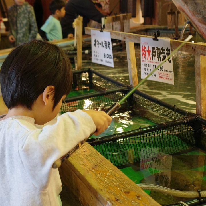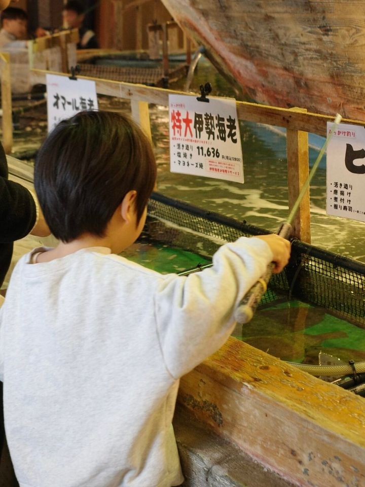 店内の生け簀で魚釣りができ、釣った魚をその場で調理してもらえる体験型の和食レストランです。