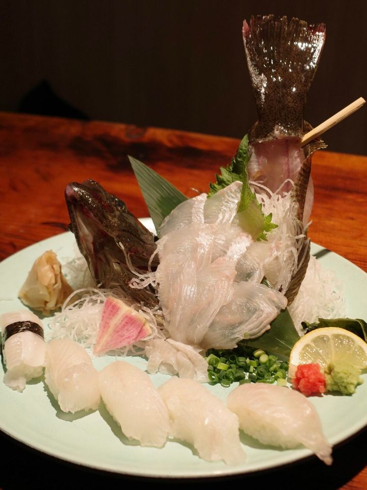 新鮮すぎて、時々ピクピク動いていました他の魚を釣っていると、あっという間に調理されたヒラメが登場…!