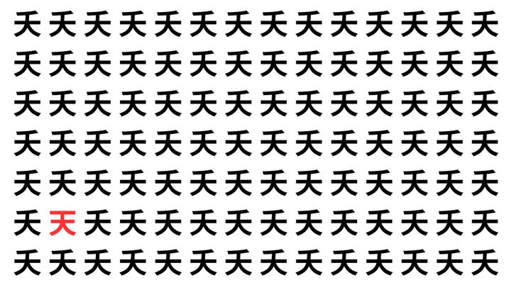 たくさんの「夭」の中に、よく似た別の漢字が1文字だけ隠れています。