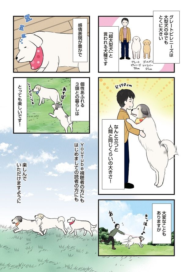 動画でおなじみのエピソードをもとに、家族との心温まる交流や犬たちの絆を丁寧に描写。超大型犬グレートピレニーズのルンルン、アラン、ベル、そして新しく仲間入りしたリリー…個性豊かで笑いと癒しにあふれる彼らとの、最高に幸せなモフ生活をお届けします!