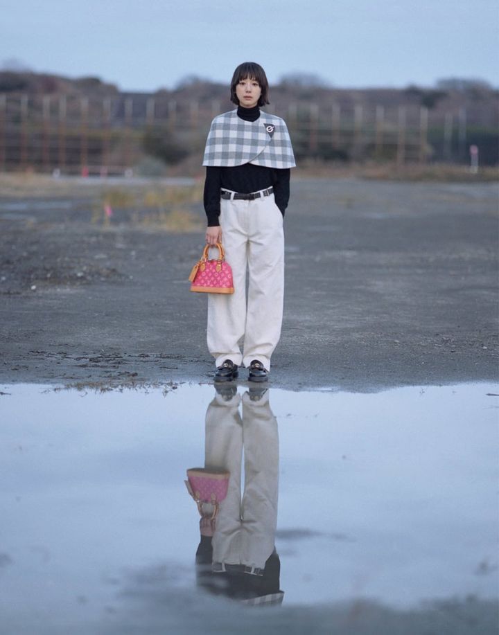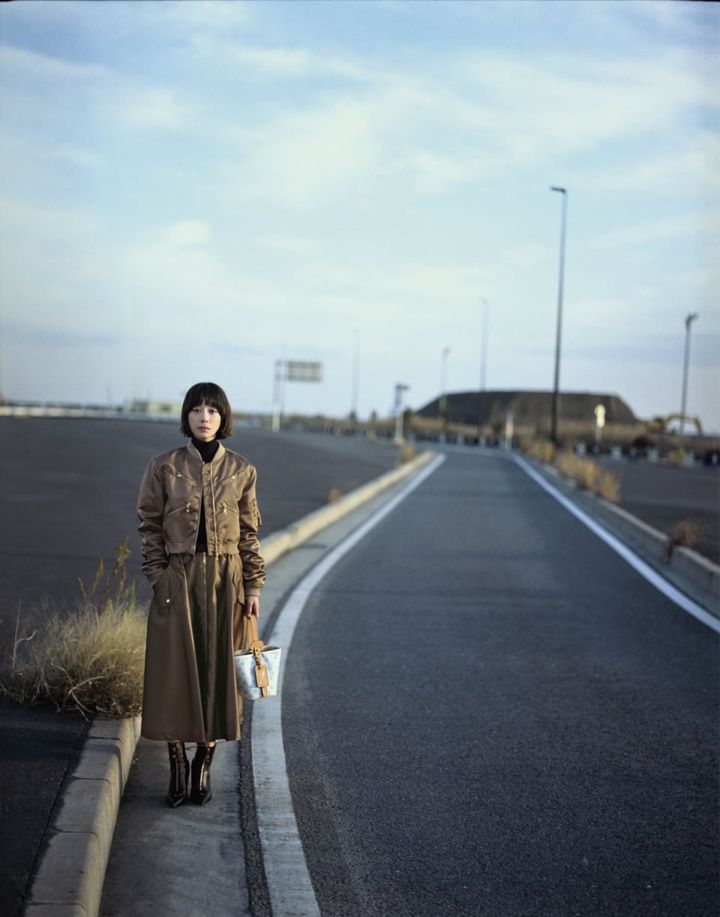最も長く愛され、受け継がれるエンブレム「モノグラム」。誰もが一目でメゾンを認知するこの有名なパターンは1896年、メゾンの創業者であり先見の明に富んでいた父、ルイへのオマージュとして息子のジョルジュ・ヴィトンが考案。以来、単なるパターンの域を超え、伝統、文化、革新を体現するシンボルに。その長い歴史になぞらえて曲がりくねる旅路の途中に立つ夏帆さん。その手には1月に発売された最新作「モノグラム・アニバーサリー」コレクションのバッグが。