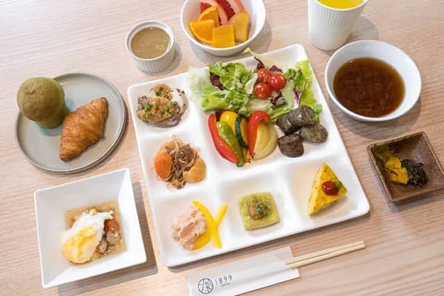 プランに含まれる朝食ビュッフェは1階の日本茶カフェ「チャヤ1899 東京」で、7時30分から10時まで。注目はお茶を使った数々の料理。そのうえ味付けもよく、何度も食べに泊まりたくなる朝食です。