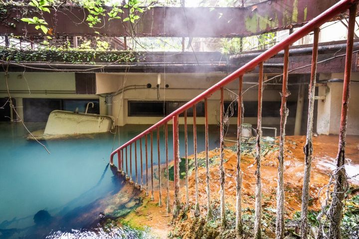 3. 廃墟になった後もこんこんと温泉が湧き続ける旅館。温泉に飲みこまれた光景がなんとも幻想的!
