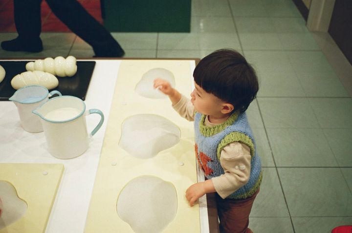 パン工場の中は生地をこねたり混ぜたりできる仕掛けがたくさんあって、息子も一生懸命こねこね楽しんでいました♪