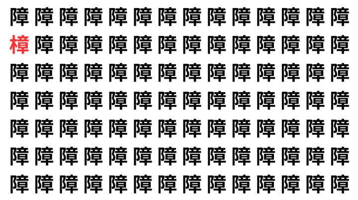 たくさんの「障」の中に、よく似た別の漢字が1文字だけ隠れています。