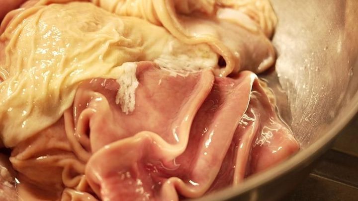 3代目の馬渡賢一さんは「うちのガツは柔らかくて、他とは違う食感ですね」と笑顔。