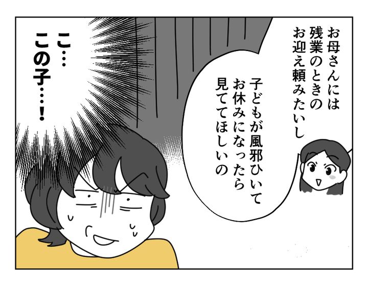 娘の妊娠は嬉しいけれど、孫育てをガッツリするつもりはないサトミさん。仕事と子育ての両立のため、ガッツリサトミさんを頼りたいミユさん。戦いの火蓋が切られました……! フルタイムで仕事をしながら子育てをするのは本当に大変なこと。ミユさんがお母さんを頼りたくなる気持ちは痛いほどわかります……が、ミユさん、サトミさんが当たり前に孫を見てくれると思いすぎではありませんか……? もしかしたらマタニティハイもあるのかもしれませんが、ちょっと視野が狭くなっていそうです!
