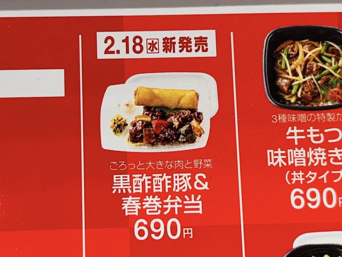 ◆ほっともっと 黒酢酢豚&春巻弁当