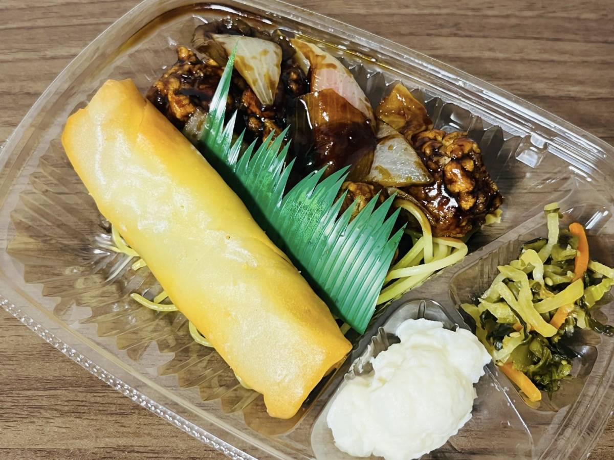 揚げたての春巻とたっぷりの酢豚がメインの、中華好きにはたまらないお弁当です。