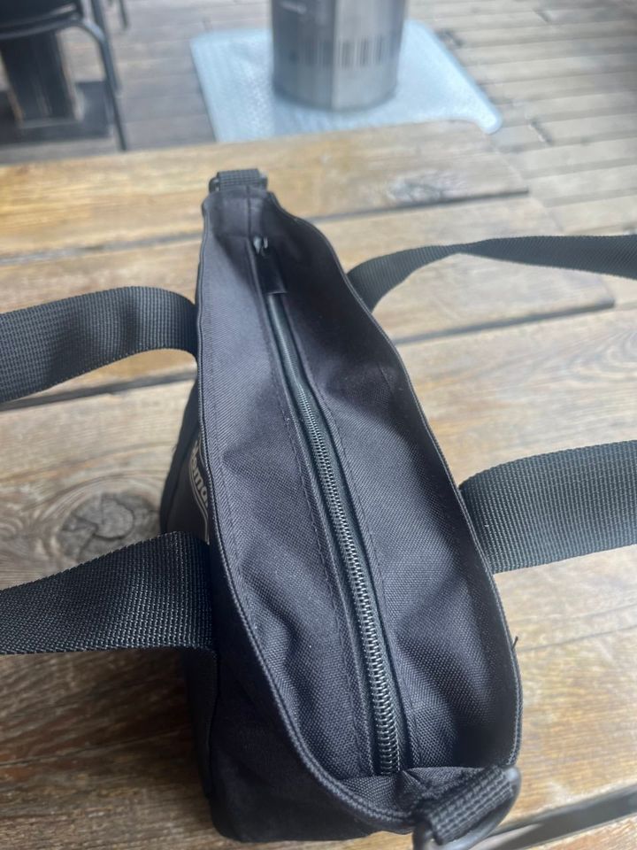 この手のミニトートでショルダーストラップ付きって珍しくないですか? そこもかなり気に入ったのですが、なんとこちら、長さの調整もできちゃうんです。この日はサコッシュのように短めにセットしてみましたが、こうするとより防犯性が高まる気がするのは筆者だけでしょうか(笑)。あと、短めのほうがバランスがよくて洒落見えするとも思ったり。