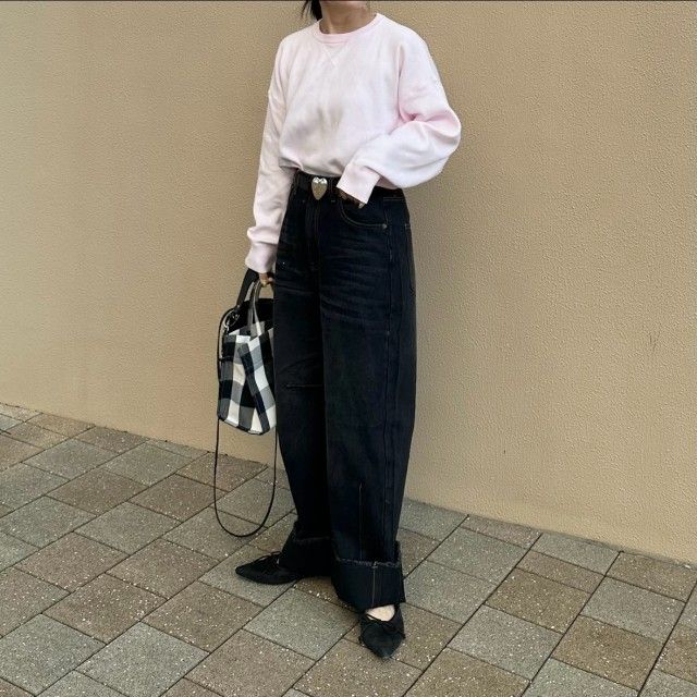 【40代のカジュアルコーデ2026春】きれい色スウェット×ブラックデニムパンツ