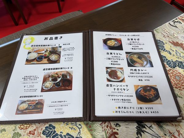 メニューはこちら。御祈禱ランチがある!