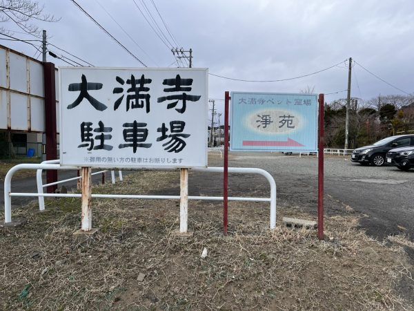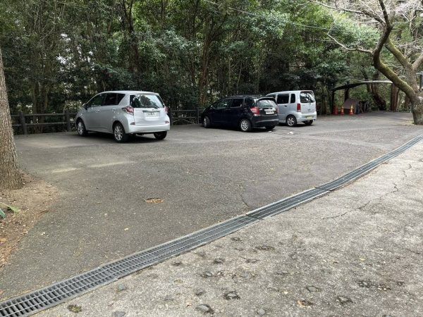 階段が多いので歩くのが難しいという方は、山の上まで細い道を上がっていくと数台分駐車場がありました。