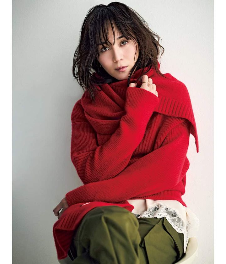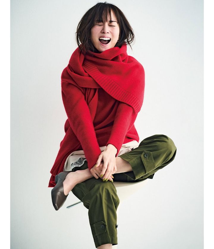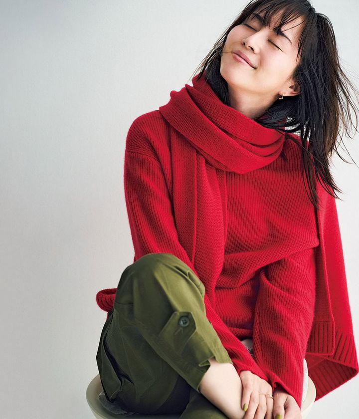 熱い一面は内に秘めていたいから強く見える色は選ばなかったけど、40歳が近づいた今は気張らずに着られそう。初めての赤は、こなれ感のあるリラクシーな着こなしで想像以上にしっくり! 新たな〝自分らしさ〟を引き出せた気がします。