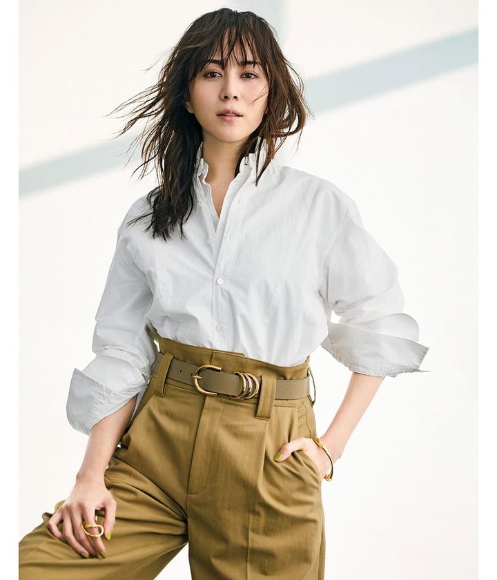 19歳で上京、29歳はとにかくもがき、39歳で新たな挑戦。節目の前は「壁」を感じてきたけどそれを超えた今は今は肩の力が抜けて自然体な自分でいられます。バリキャリの役を演じることが多かった分、常に自分の中に息づいている、凛としたニュートラルな女性像。そのイメージを体現する白シャツは、レイヤードすれば鮮度の高いコーデに。