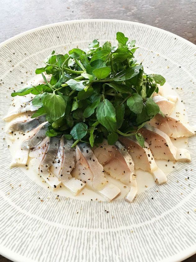 ぶりとクレソンの白ワイン蒸し
