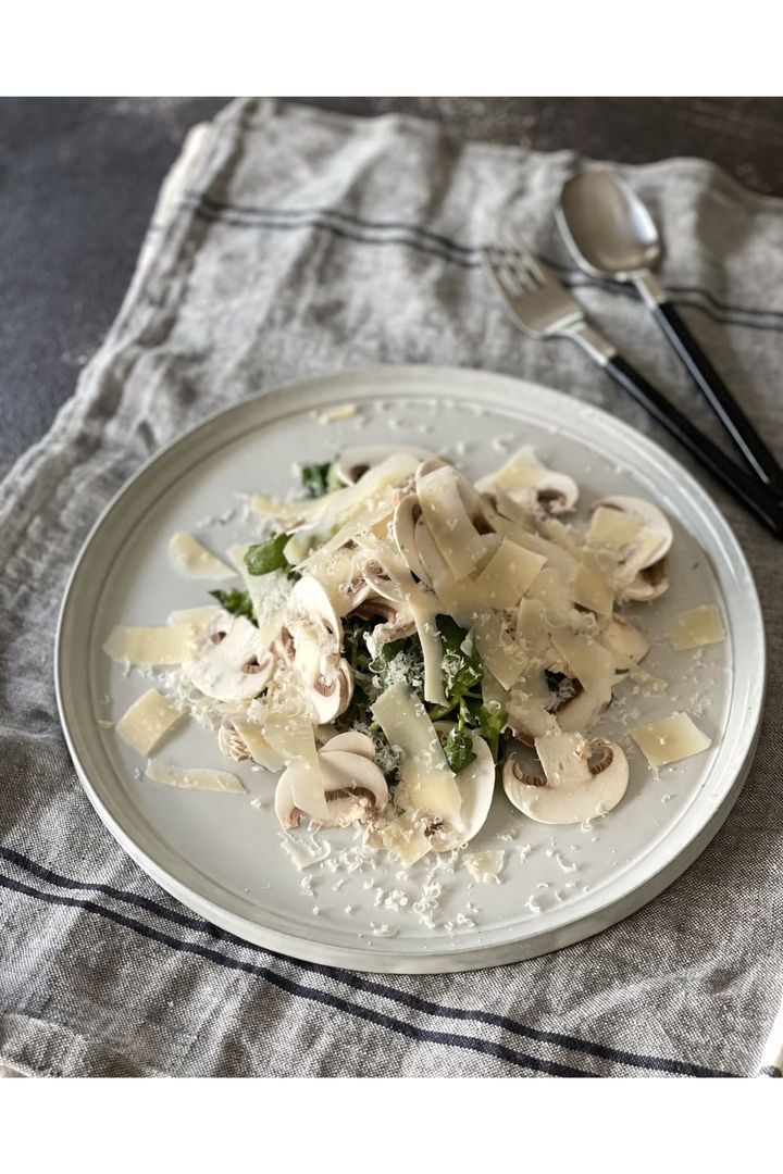 芳醇な香りのマッシュルームに、クレソンの鮮烈な香りを合わせることで洗練された印象の一皿に。パルミジャーノ・レッジャーノのコクが、素材の味わいを1つにをまとめ上げてくれる。白ワインと一緒に楽しもう。