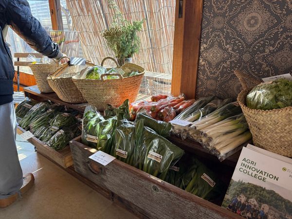 いも子は、菜の花、アレッタ(ブロッコリーとケールの掛け合わせ)、人参、里芋を購入。