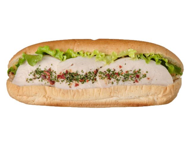 アミュリア(高食物繊維小麦粉)入りのパンに食感の良い人参・玉葱・ブロッコリーを混ぜ合わたサラダチキンを挟み、マスタードでアクセントを加えました。 カロリー:227kcal 【販売地域】東京都