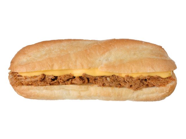 低温調理されたプルドポーク(豚の肩肉を柔らかくし、ほぐして細かくしたもの)チーズソースサルサソースを組合わせ、食べ進みが良く満足感のあるバゲットサンドです。 カロリー:304kcal 【販売地域】北海道、東北、関東、甲信越、北陸、東海、近畿、中国、四国、九州