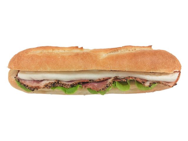 パストラミとクリームチーズ、ピクルスマヨネーズを組み合わせた食べ進みの良いバゲットサンドです。 カロリー:305kcal 【販売地域】近畿