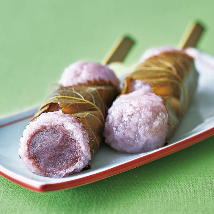 食べやすいサイズに丸めた小さな桜もちを串に刺し、団子に仕立てたユニークな一品。中にはこしあんがたっぷりと入り、食べ応えも抜群だ。桜もちに巻かれた塩漬けの桜の葉がアクセントとなり、口いっぱいに広がる桜の香りに春を感じさせる。自然解凍でしっかり室温に戻せばやわらかな食感が楽しめ、半解凍のまま少し冷たい状態でいただけば、もちもちとした食感が際立つ。