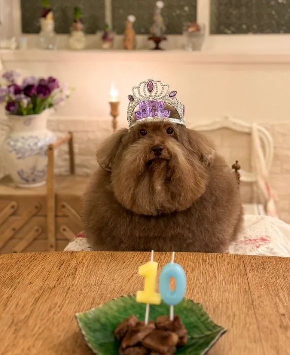 中世ヨーロッパを思わせる顔周りの毛に、美しく整えられた丸いフォルム。キラキラと光るティアラも相まって、童話やファンタジー系の映画に登場する王様のようです。