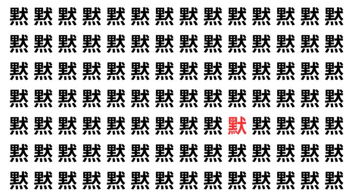 たくさんの「黙」の中に、よく似た別の漢字が1文字だけ隠れています。